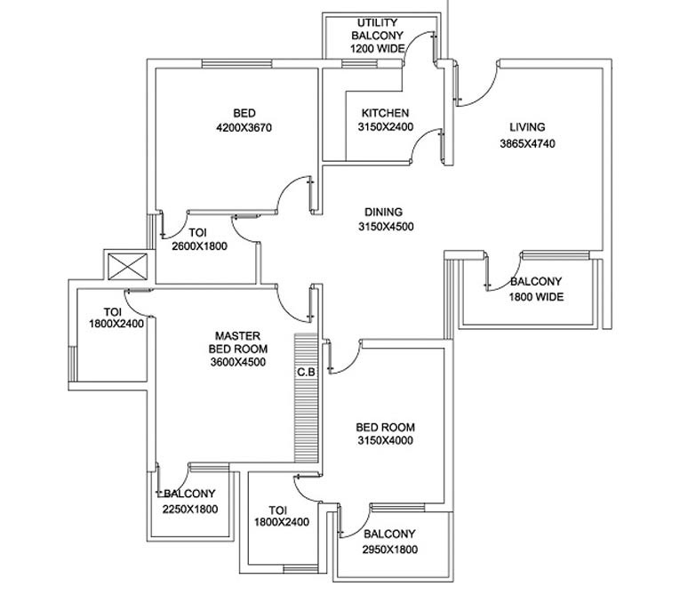 | Tower No. | Area (in sq.ft.) | Unit Type | Apartment |